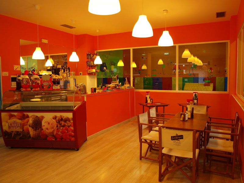 Disponemos de servicio de cafetería para que los papás se relajen mientras sus hijos juegan, con barra y mesas donde podrán degustar aperitivos, con bebidas, disfrutando de la zona WIFI y viendo, en todo momento, la diversión de los pequeños.